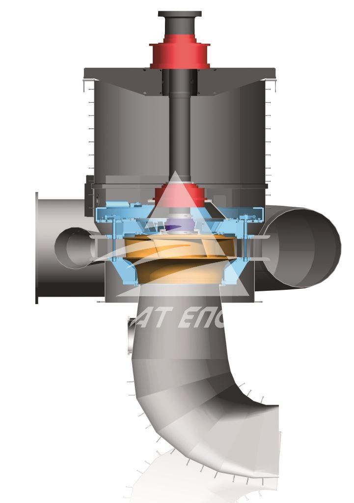Відмінні риси: спіральна камера розраховується за законами гідравліки і проектується відповідно за конкретними показниками потужності. За рахунок індивідуального надання форми в спіральній камері досягається оптимальний рух потоку і, отже, високий к.к.д.